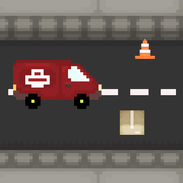 Road Game Innit is the first game that I ever created. It was made using Pygame and it took me around 30 hours or so to create. You play as a mail van collecting parcels and dodging traffic cones. Every parcel you get increases your score by 1. That is the entire game. This game is also the origin story for my traffic cone persona.
